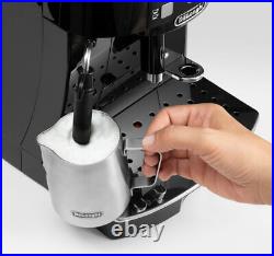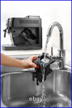 The conical steel grinders are calibrated for 100% accuracy. De'Longhi Tubeless System reduces the amount of coffee powder left inside the grinder to a minimum, so only newly ground coffee is used to create your espresso. 14 coffees / 72 hours. Automatic descaling, cleaning and rinsing programmes.