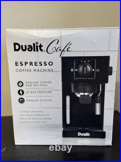 Item is brand new, never used, fully tested and functional. Comes with free ice cube mould. Enjoy the rich and intense flavour of a professional espresso with the Dualit Espresso Coffee Machine in Black. This high-quality machine is made of durable stainless steel and features a compact design with a width of 15 cm, a height of 28 cm, and a depth of 24 cm. It has a 1.4 L water tank capacity and can make one cup of espresso at a time.