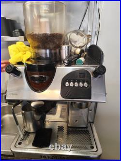 This espresso coffee machine has a built-in grinder and can make one group of espresso at a time. It is manufactured by Expobar, well-known for its commercial coffee equipment. This machine is designed specifically for making espresso, cappuccino, and other coffee drinks in a professional setting.