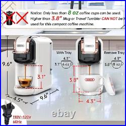 Compact Design & Cup Size Tips: The size of the coffee maker single serve is 4.5" W x 9.6" D x 9.6 H, with a 20 oz BPA-free reservoir. Compact design just requires little space, which is easy to keep your kitchen or office clean and tidy. CUP SIZE TIPS: 6 oz8 oz coffee cup is recommended, higher than a 3.8 mug or travel tumbler CAN NOT be used for this compact coffee machine. Please measure your cup before purchasing. Energy Saving & Anti-dry Protection: The single cup coffee maker will automatically shut down after 15 minutes when it is not operating, so don't worry about forgetting to turn off the power.Anti-dry function effectively protects machine components and ensures safe extraction. Note: Products with electrical plugs are designed for use in the US. Outlets and voltage differ internationally and this product may require an adapter or converter for use in your destination. Please check compatibility before purchasing.