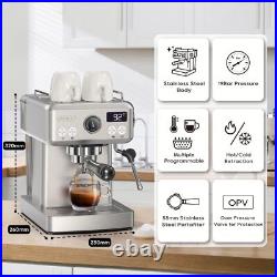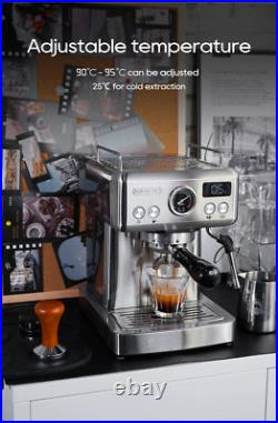 Precise PID Temperature Control: Stable temperatures for optimal extraction. Adjustable Pre-Infusion: 0-10 seconds for even extraction. LED Display with Shot Timer: Intuitive and easy to use.