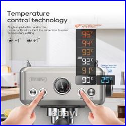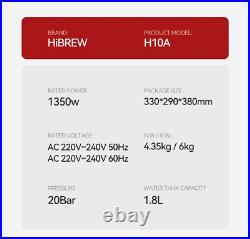 Compact Stainless Steel Design: Space-saving without compromising quality. Pro-Grade Steam Wand: Creates silky microfoam. Auto Temperature Surfing: Seamless brewing and steaming. HiBrew H10A puts every element of your espresso experience in your hands.Brew temperature: 90°C - 95°C for hot, 25°C for cold, matching roast type for optimal flavor. Steam temperature: 125°C - 150°C, tailor steam power to your liking. Shot volume: Preset single or double shots volume for one touch brewing. Pre-infusion timing: 0 - 10 seconds for even extraction, bringing out balanced, rich flavors. The adjustable pre-infusion feature gives coffee grounds a gentle soak before the full pressure is applied.