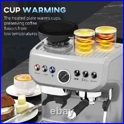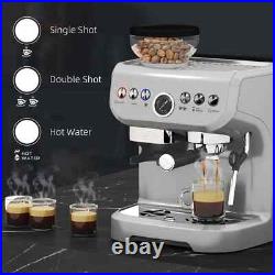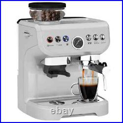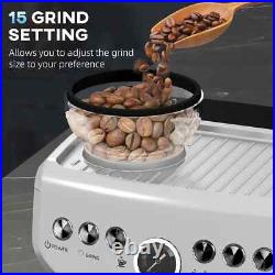 Espresso coffee machine has 15 precision grind settings. Top warming plate for cups.Steam wand froths milk for cappuccinos and lattes. Hot water function, by the press of a button.