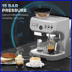 Create professional coffee, all in your own home with this HOMCOM automatic coffee machine. Look to the steam wand for frothy milk, with the 15 grind options giving you plenty of choice in how course or smooth you want the finish. With the 15 bar pressure, this coffee machine gives you a delicious beverage, everytime. Comes with all the parts you need.