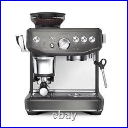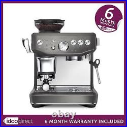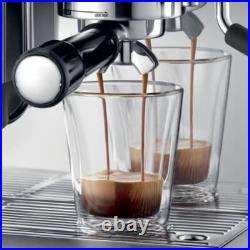 You're only a touch away. Intelligent dosing with an integrated conical burr grinder with 25 grind settings. The dose is automatically calculated based on the last grind, ensuring it's ready for the next use. Delivers a constant 10kg impression to your dose, finishing it with a 7º barista twist for a more polished puck. Precision measurement auto corrects the next dose. If your dose required a bit more or a bit less, the intelligent dose system auto corrects, remembering the last dose and tamp outcome and adjusting it to ensure you achieve the perfect dose this time. Low pressure pre-infusion followed by 9 bar extraction. An opulent, creamy and caramel coloured espresso starts with low pressure pre-infusions, followed by a high pressure (9 bar) extraction process delivered via our 15 bar Italian pump. Thermocoil heating system delivers 93ºC with PID temperature control.The Thermocoil heating system with PID temperature control delivers water at exactly 93ºC for perfectly balanced flavours. Portafilter, Water Filter Holder, 1 & 2 Cup Single Wall Filter Baskets, Box (may not be original).