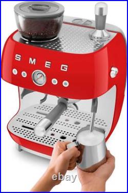 Item has small cosmetic imperfections from use. BARISTA EXPERIENCE: Living the Barista Experience is possible with the Smeg EGF03 machine: a concentrate of technologies that contribute to the preparation of an optimal coffee. DUAL HEATING SYSTEM: The Themoblock has a dual heating system, one dedicated to the coffee circuit and one to the milk circuit, ensuring that the steam function is always ready immediately after the coffee has been brewed. EVEN GRIND: The integrated coffee grinder is equipped with stainless steel conical burrs that allow you to set the grind to a super-fine option.